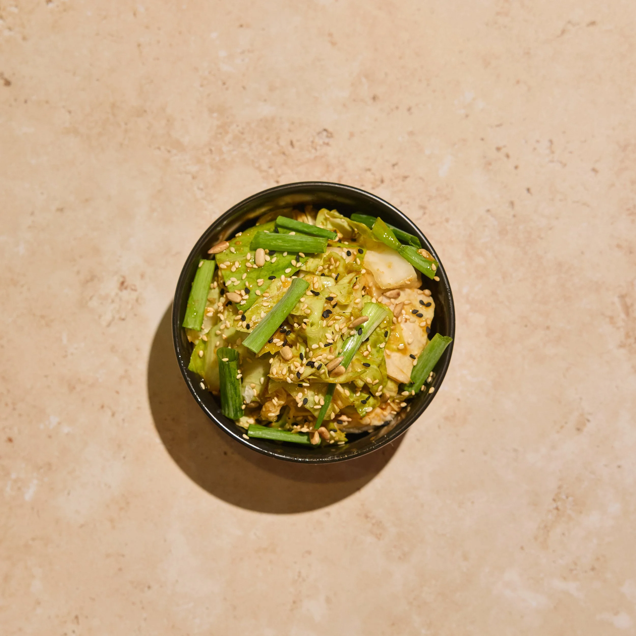 Cabbage, Scallions, Sunflower Crunch, Kimchi Dressing.