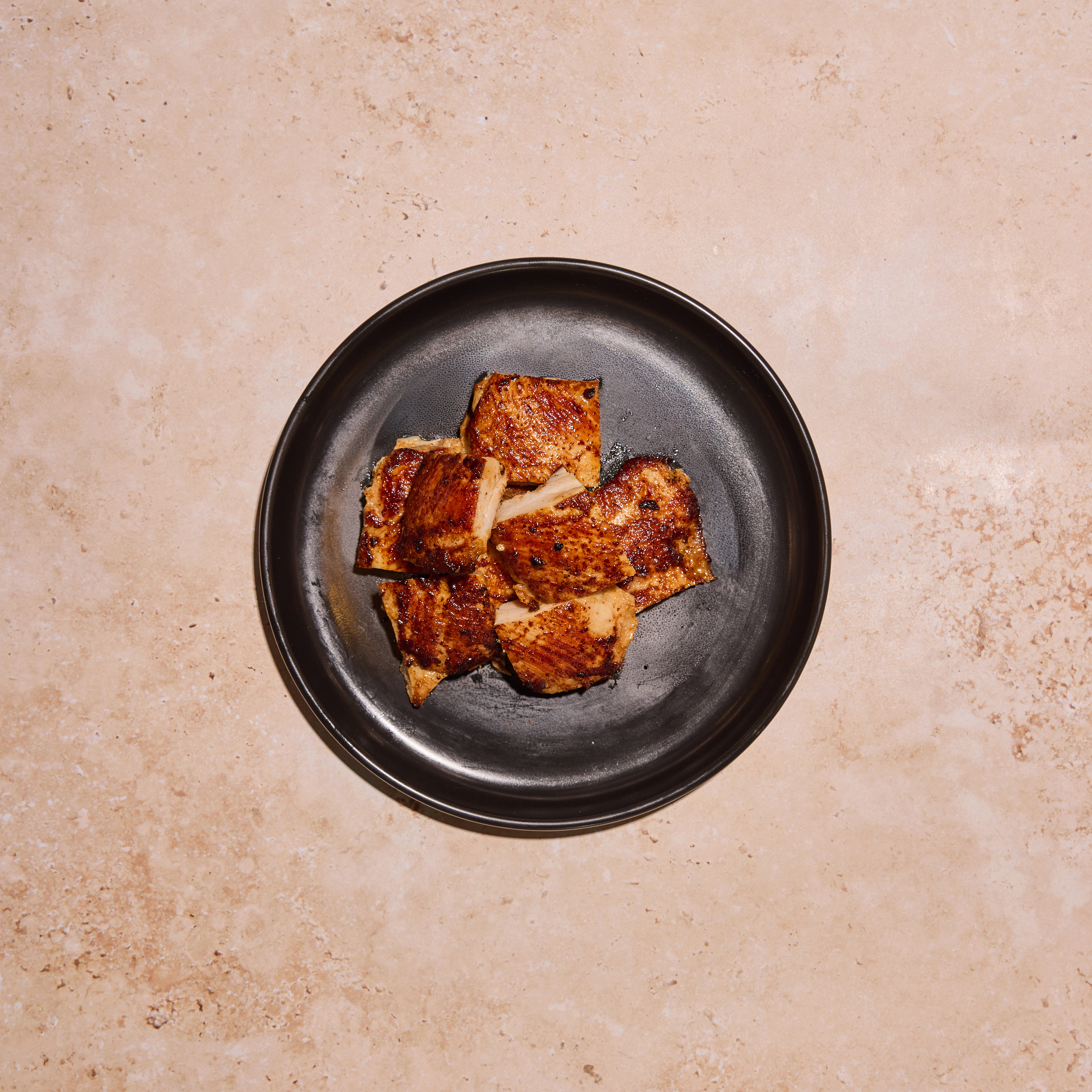 Charred Chicken Thigh, Florida Citrus Marinade, Garlic, EVOO, Sea Salt, Pepper.